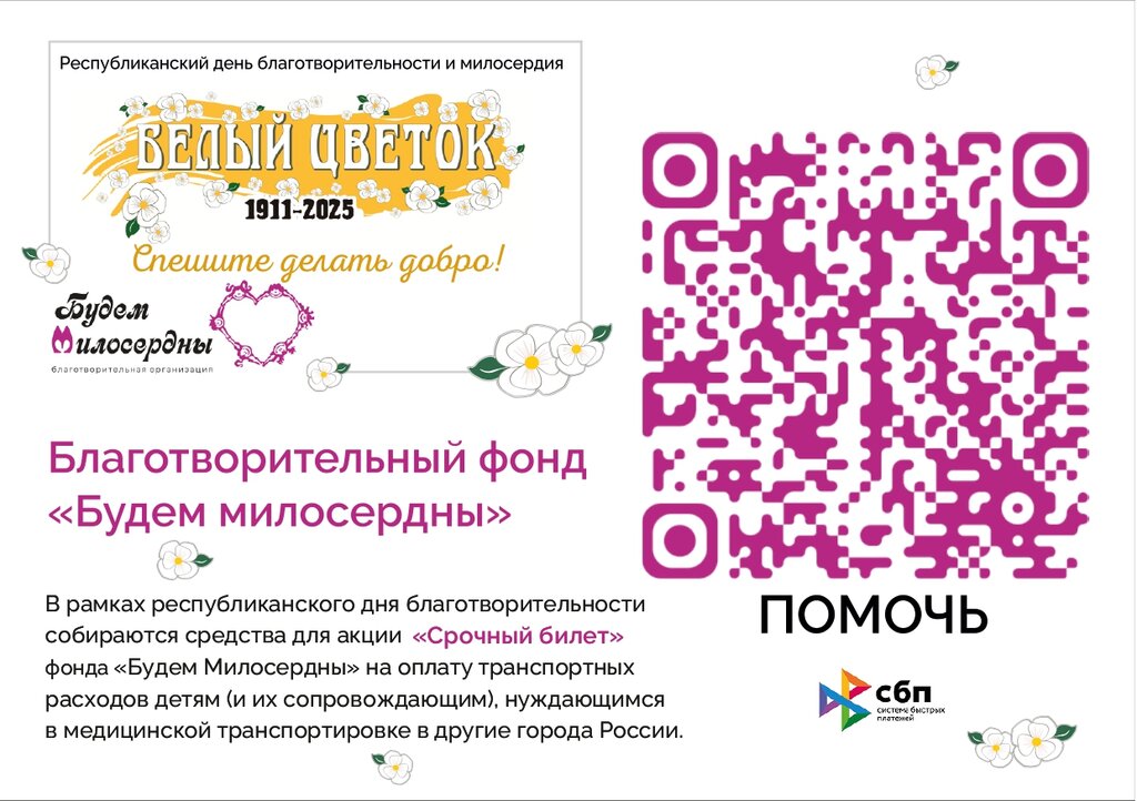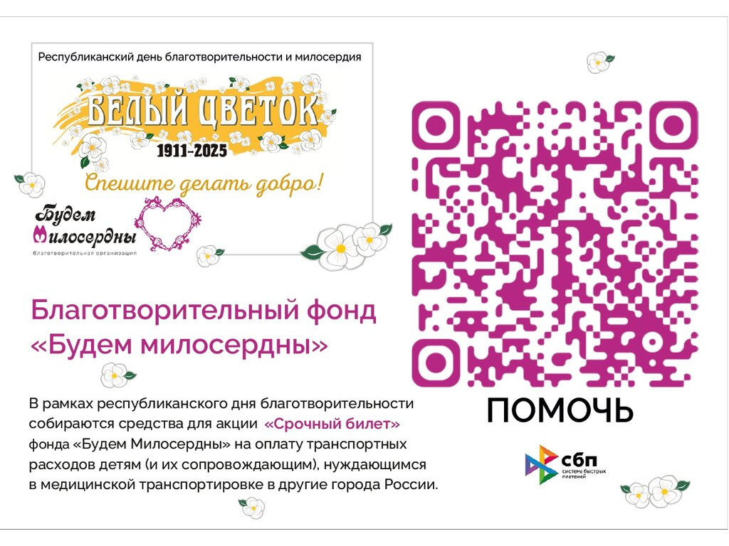 «Белый цветок» — название благотворительной акции и праздника благотворительности и милосердия. Символом акции является белый цветок. В России первый «День белого цветка» прошёл в Санкт-Петербурге 20 апреля 1911 года по инициативе императора Николая II и его супруги Александры Фёдоровны. Традиционно, в рамках акции, в образовательных учреждениях проводятся мероприятия (тематические беседы, просветительская работа , выставки).